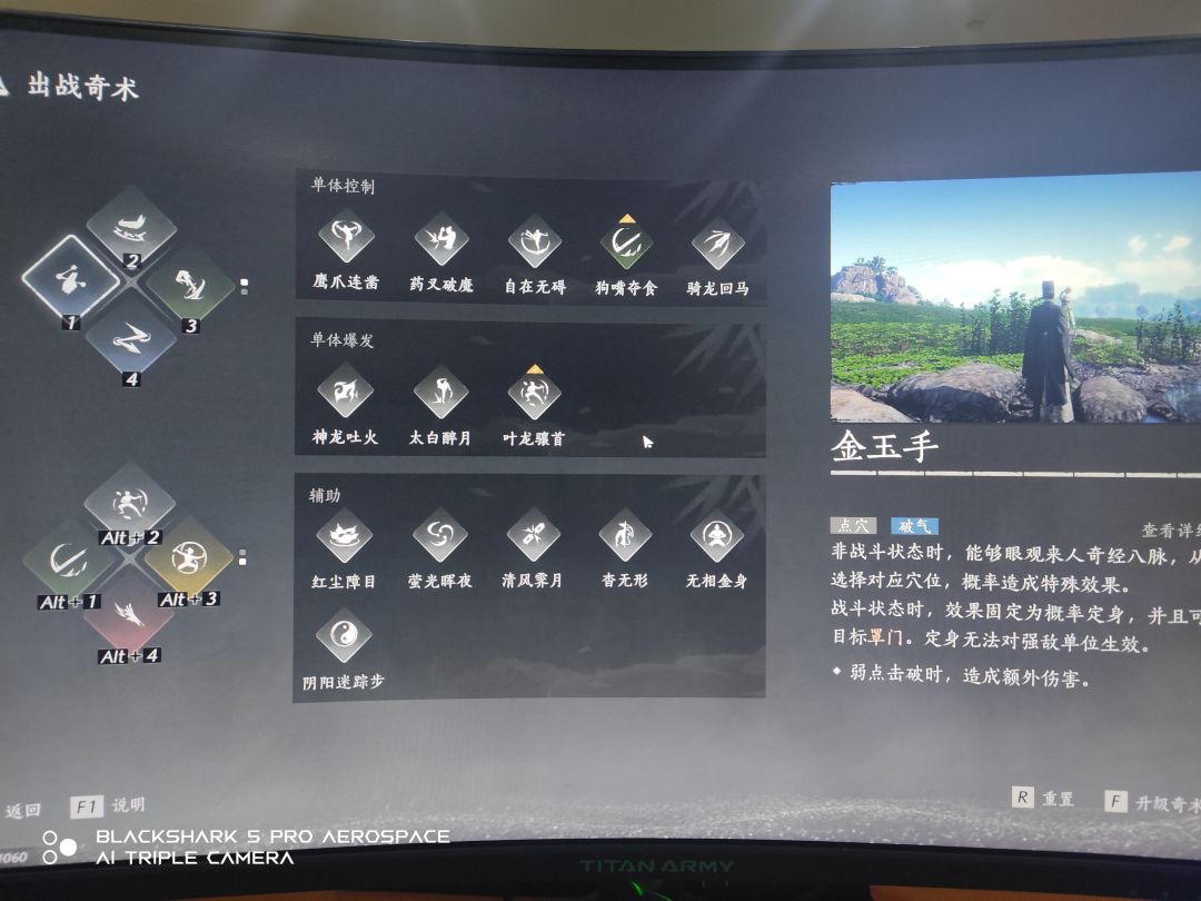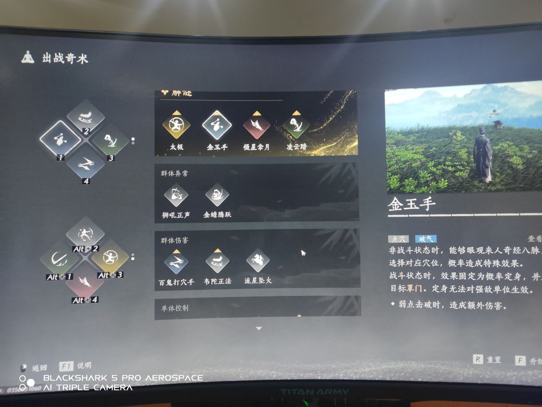 2.奇术:先说前期开荒好用的,金玉手、凌云踏、金蟾腾跃、韦陀正法。后面开封任务做完之后可以加上百鬼打穴手、狗嘴夺食。 当然像类似于狮吼功、流星坠火、叶龙骧首、鹰爪连凿这些都能用,不过要么是会硬控自己,要么是奇术点要求高,要么就是伤害倍率低,pvp还行,pve就拉胯了。