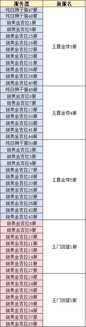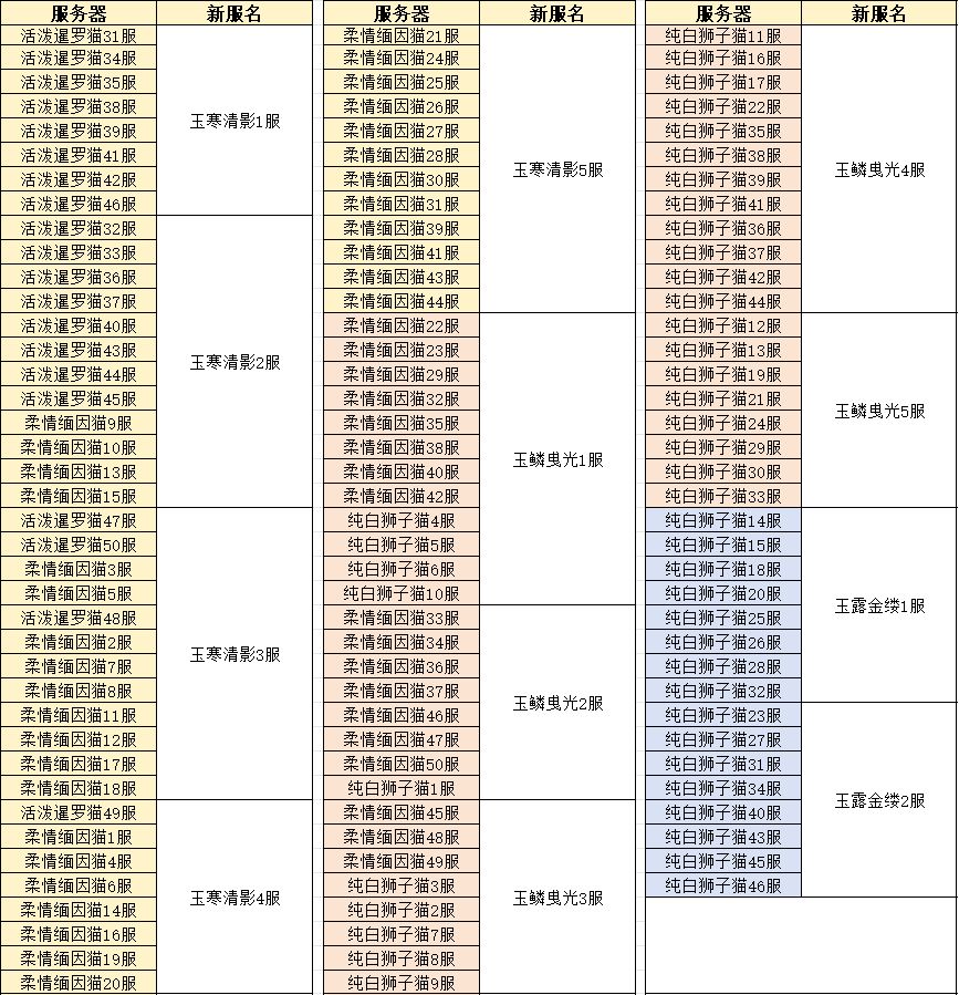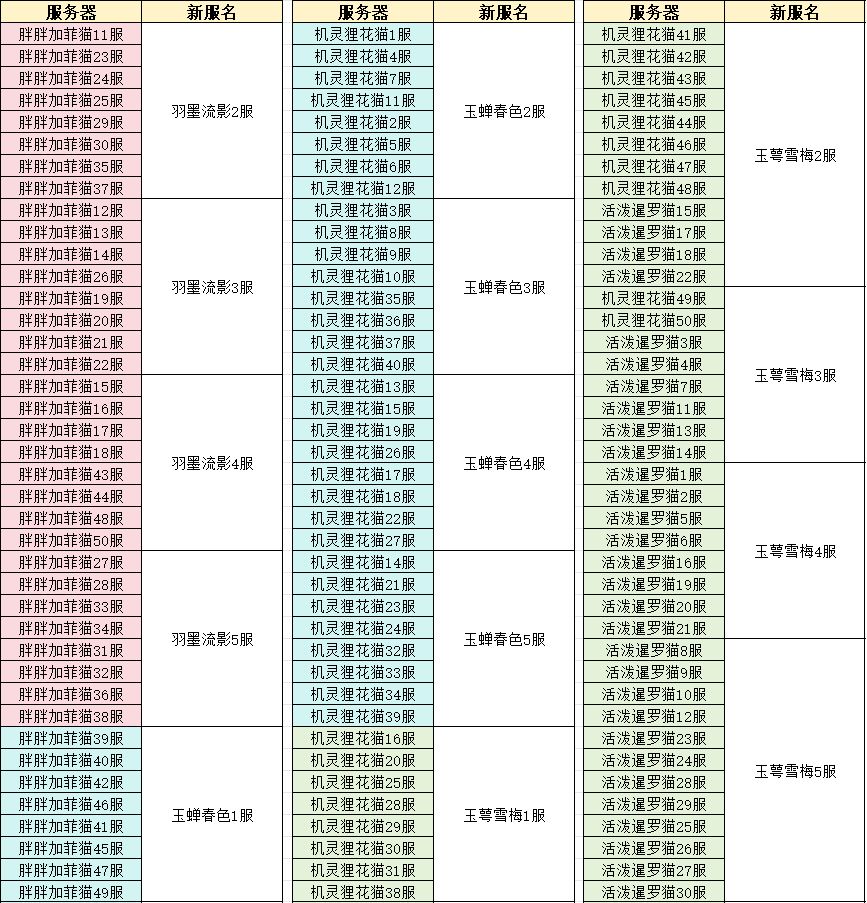 我们会根据各个区服的实际情况调整进行合服的区服,合服完成后相关功能调整变更如下: