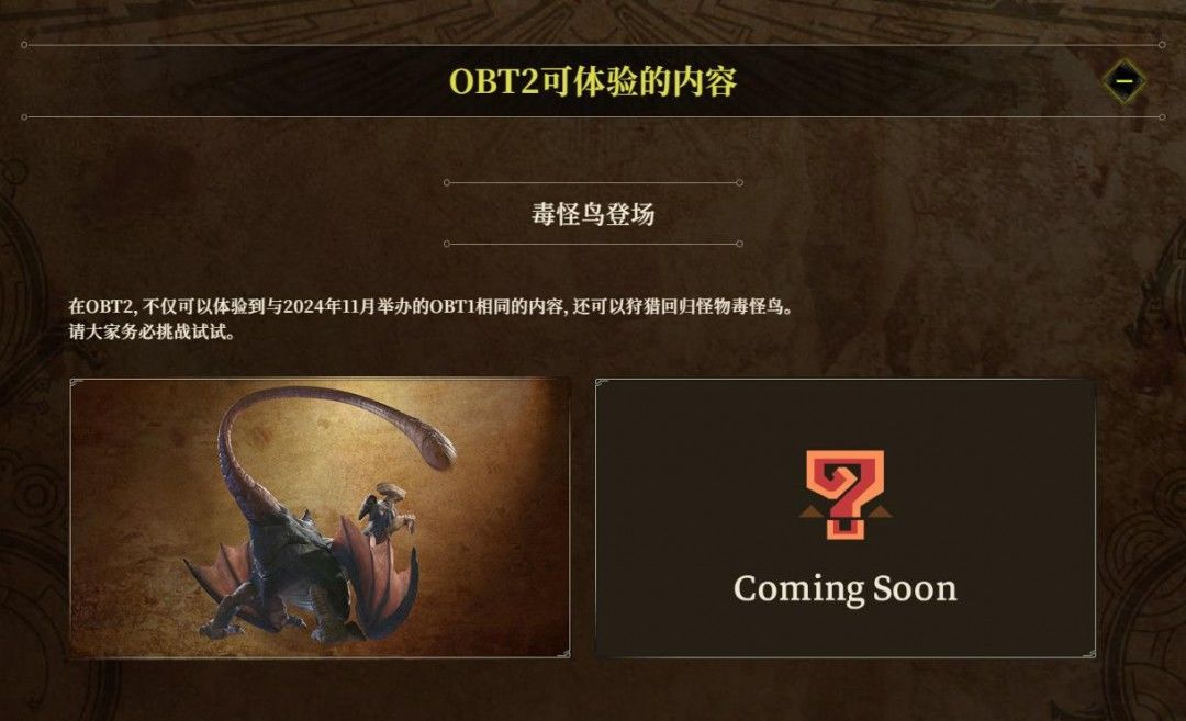 上次公测到现在也有一段时间了,没有想到发布前我们还能有机会再参与一次《怪物猎人:荒野》的公测。那么各位千万不能放过这次机会了,是时候准备准备挑战“毒妖鸟”了!同时也为之后的荒野之旅提前热身吧!!