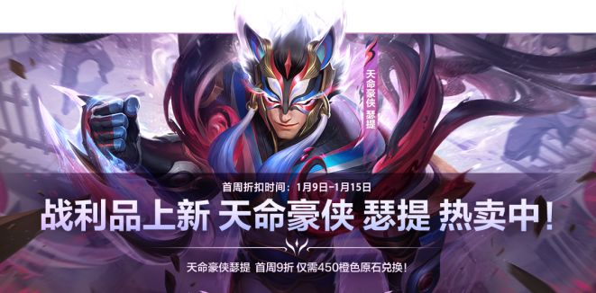 天命豪侠 瑟提将于1月9日(明日)上架战利品系统,并迎来首周(1月9日-1月15日)9折的折扣优惠,召唤师仅需橙色原石*450就可以兑换获得~