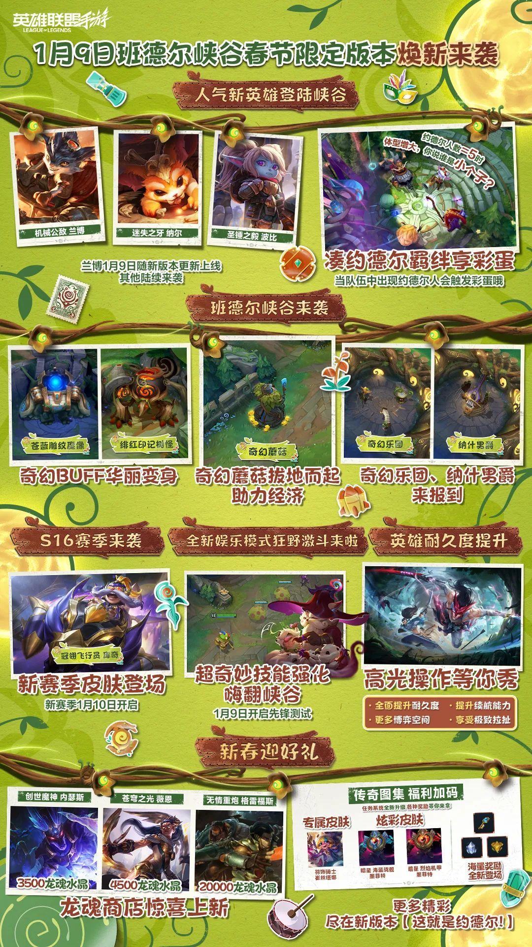 同时,还有重大惊喜来袭!1月9日(明日),班德尔峡谷将迎来梦幻变身,春节限定版本震撼登场,焕新你的峡谷激战体验!