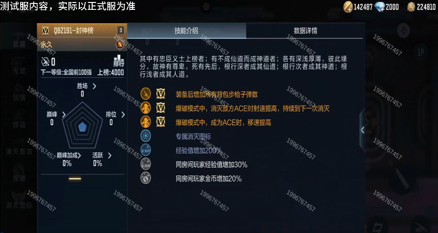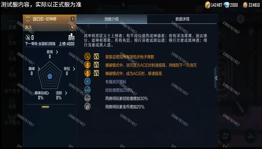 这把QBZ191-封神榜不管是外观还是属性,都让人眼前一亮,若是强者那么这把武器会让你更上一层楼,若是弱者拿上这把武器,经过千锤百炼依然可以打败敌人成为强者,只要不放弃就终会成功。以上内容均来自体验服,并不代表最终品质,最终效果请以正式服为准!最终上线时间敬请关注版本更新公告。