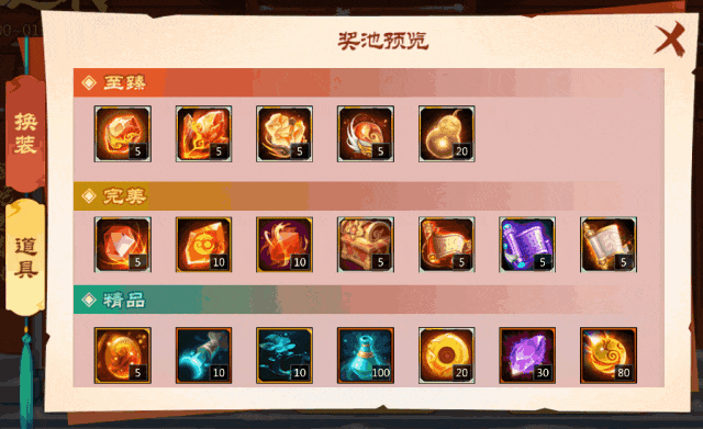 ▼ 换装 & 道具奖池: