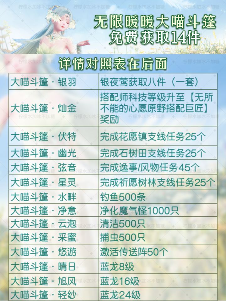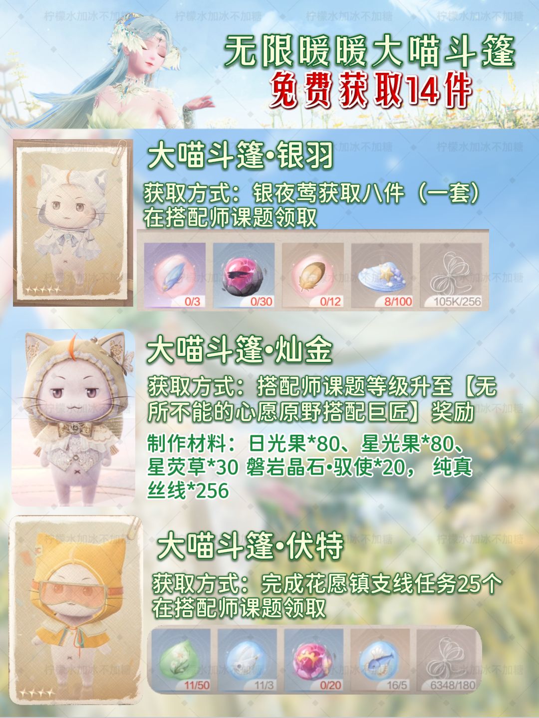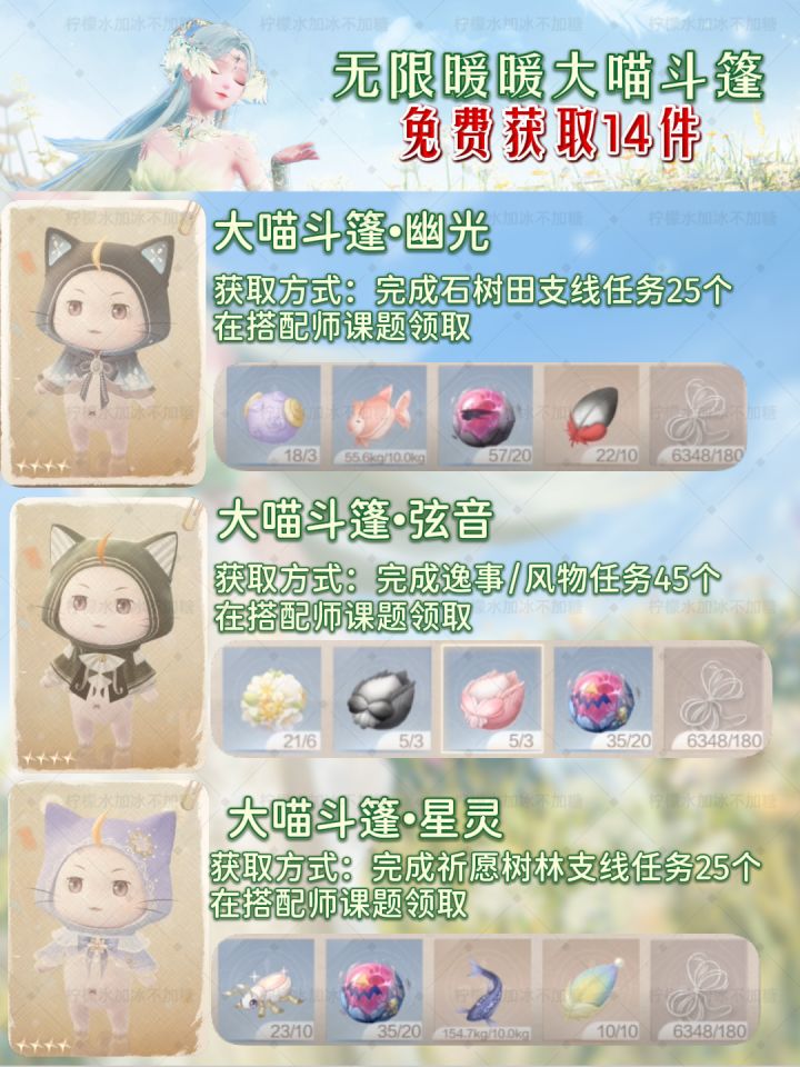 【无限暖暖】免费大喵斗篷14件获取指南!