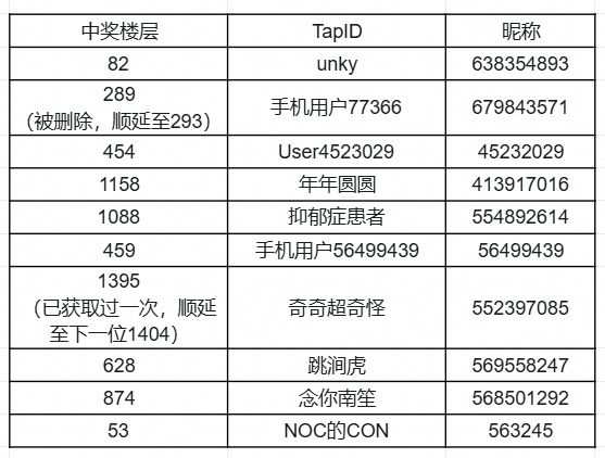(所有抽奖名单均由在线随机数生成器随机产生,若选中楼层已删除,则自动顺延一位获奖)
