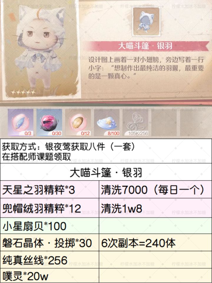 【无限暖暖】大喵斗篷·银羽解锁条件及材料