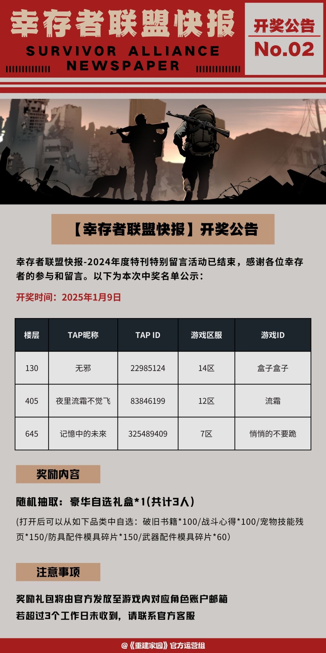 【开奖公告】幸存者联盟快报 | 留言活动开奖
