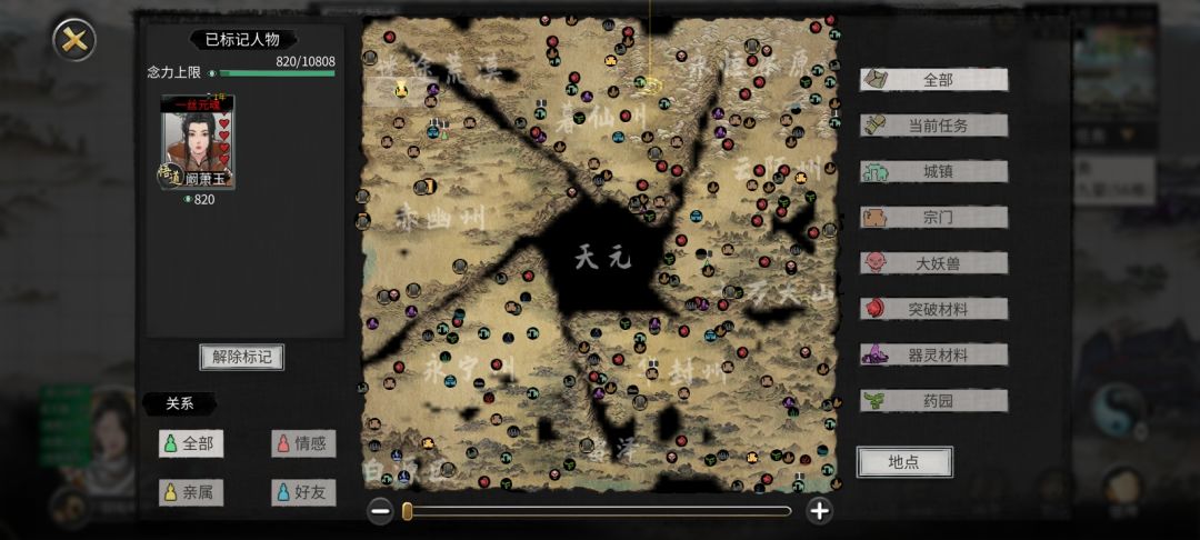 然后进入大世界地图,会显示已标记的人物,点击弟子头像,弟子死亡的位置就会出现光柱。