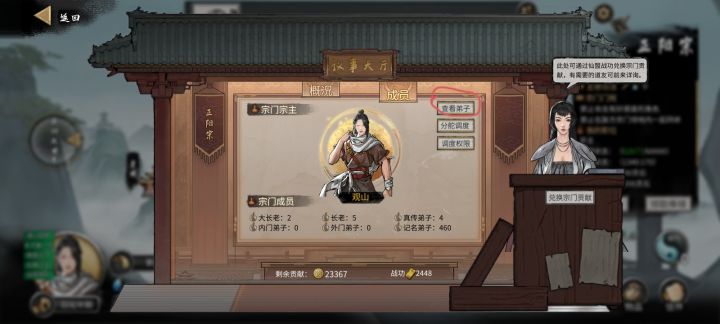 首先进入自己宗门,点开议事大厅,然后点击查看弟子,进入查看弟子的界面就可以看到弟子是否死亡。