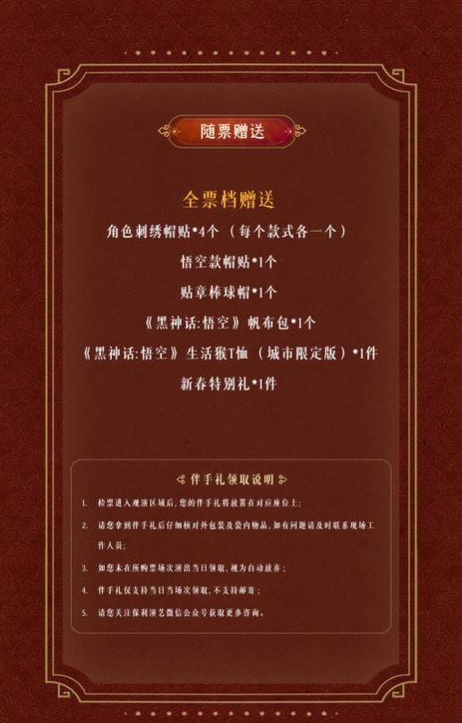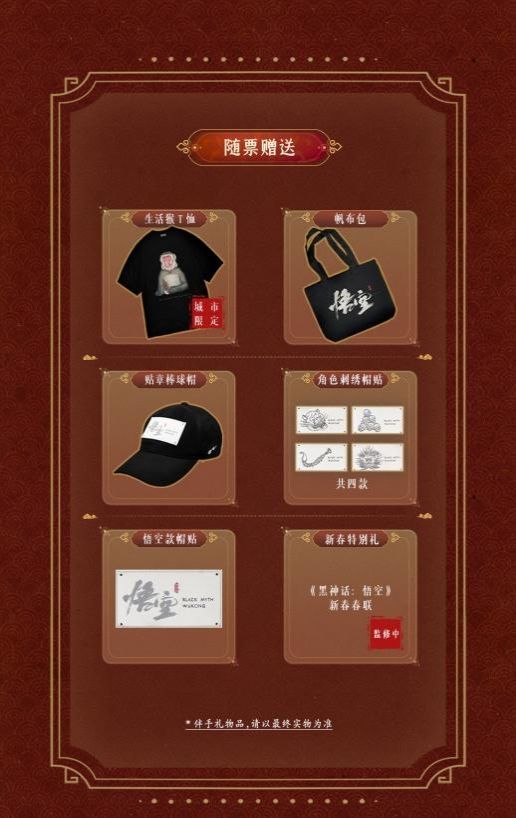 全档位门票随票附赠伴手礼,内含《黑神话:悟空》新春春联