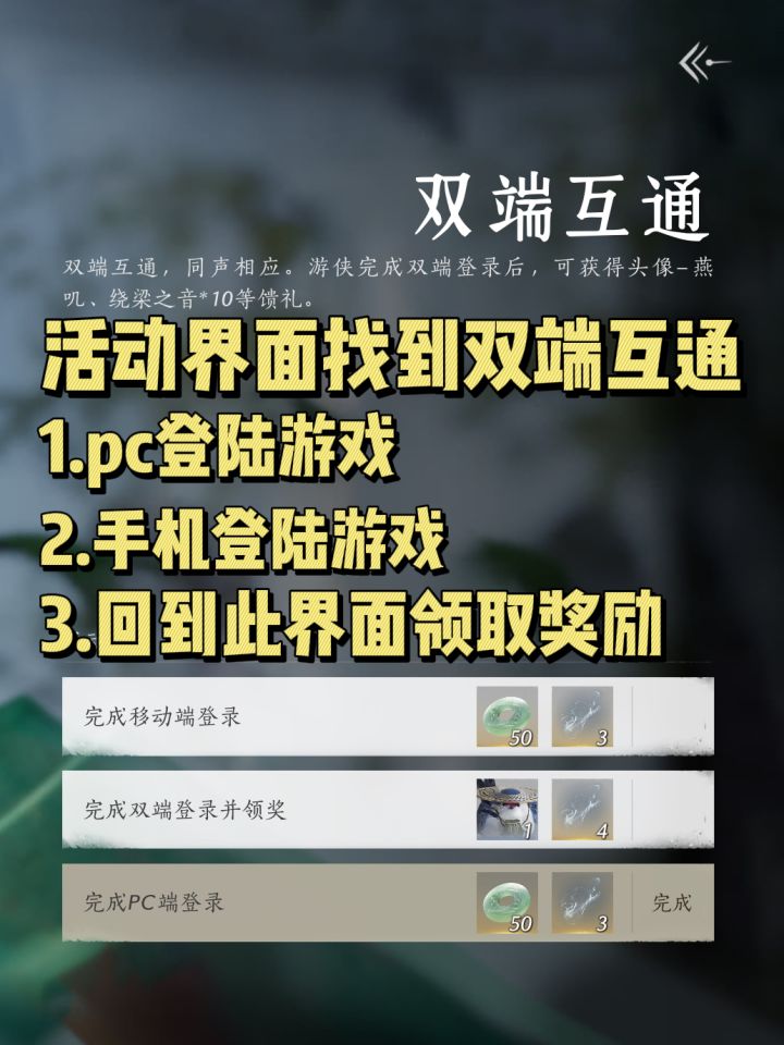 👀还不速速完成双端登录,白来的奖励不要白不要‼️