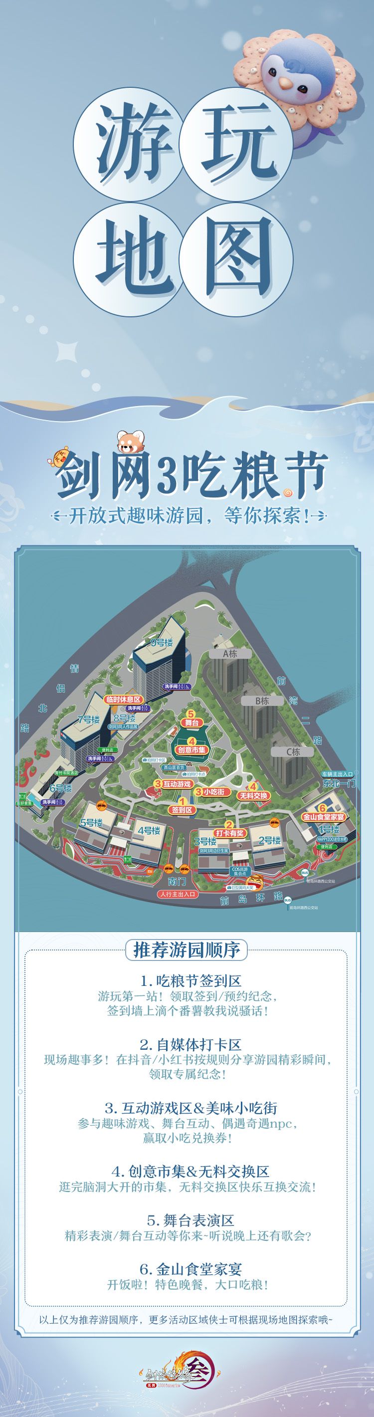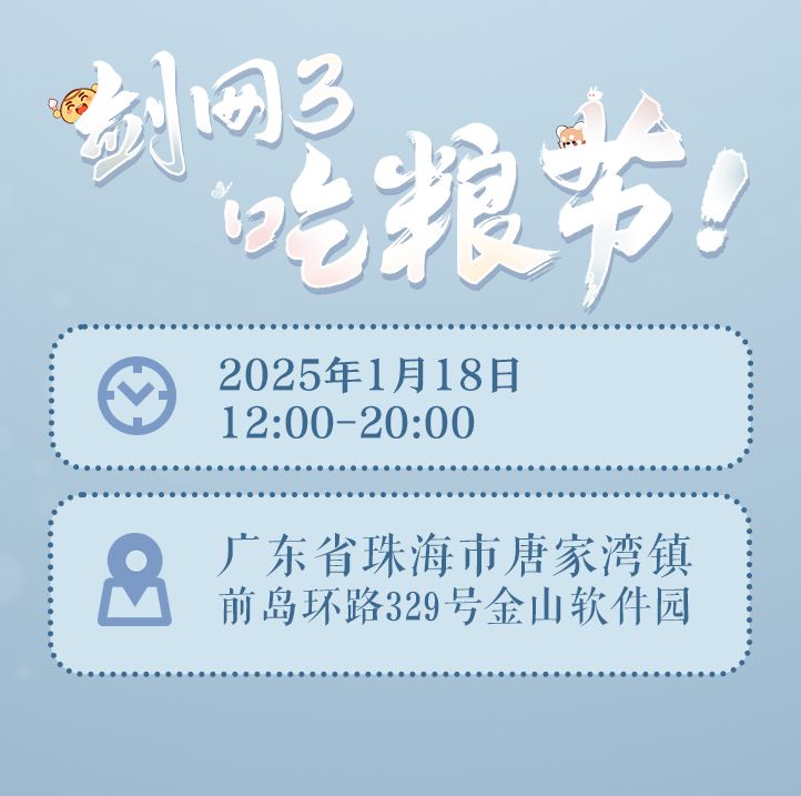 聚游园,大口吃粮!《剑网3》吃粮节线下游园活动1月18日欢乐启幕!游园会不仅有创意市集、互动游戏区和美味小吃街等区域,给你带来欢乐体验,还有无料交换区、同人展和周边衍生展等等展示侠士们的精彩创作,传递一份份暖心快乐!线下玩转指南今日奉上,活动当天12:00也将同步开启线上直播,侠士们可以锁定各大平台官方直播间,一起沉浸云游!