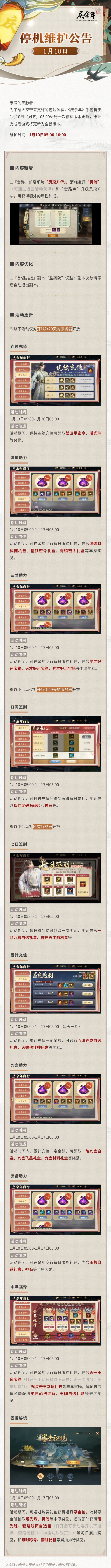 为了给大家带来更好的游戏体验,《庆余年》手游将于1月10日(周五)05:00进行一次停机版本更新,维护完成后游戏将更新为全新版本。