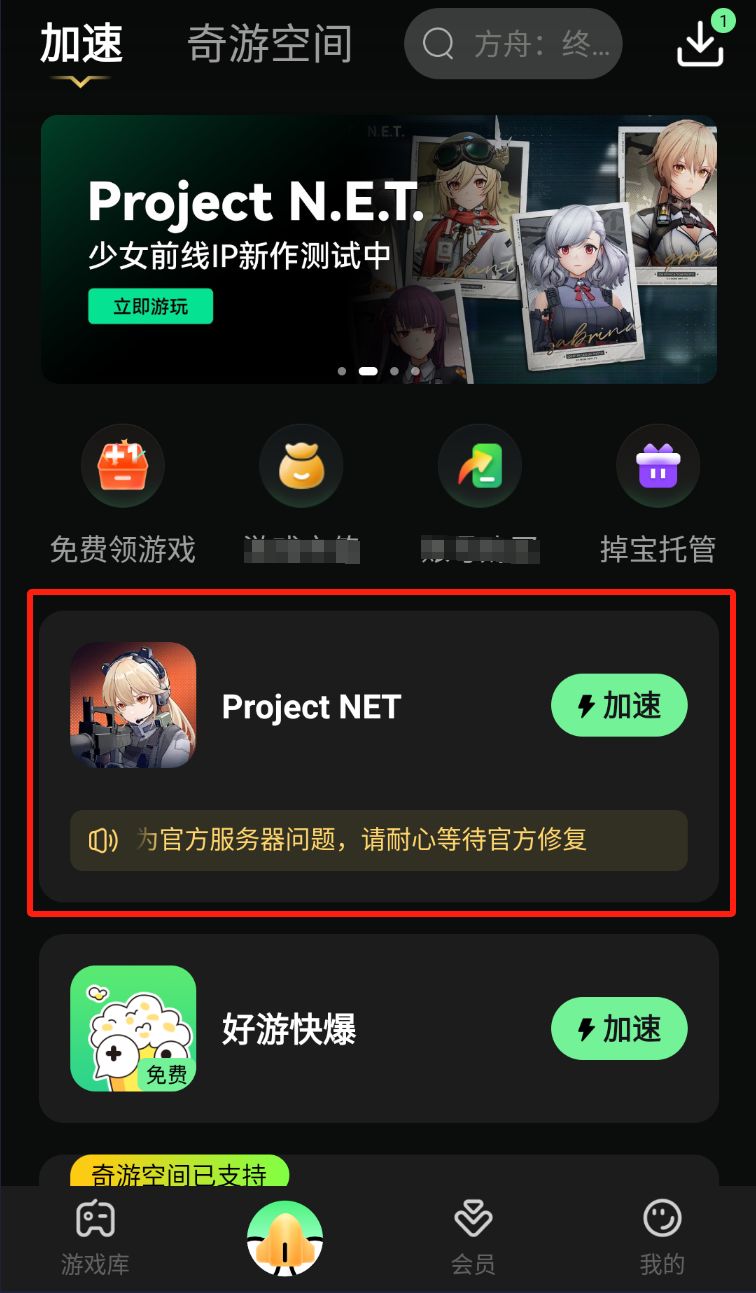 第三步:奇游内搜索【Project NET】即可下载游戏
