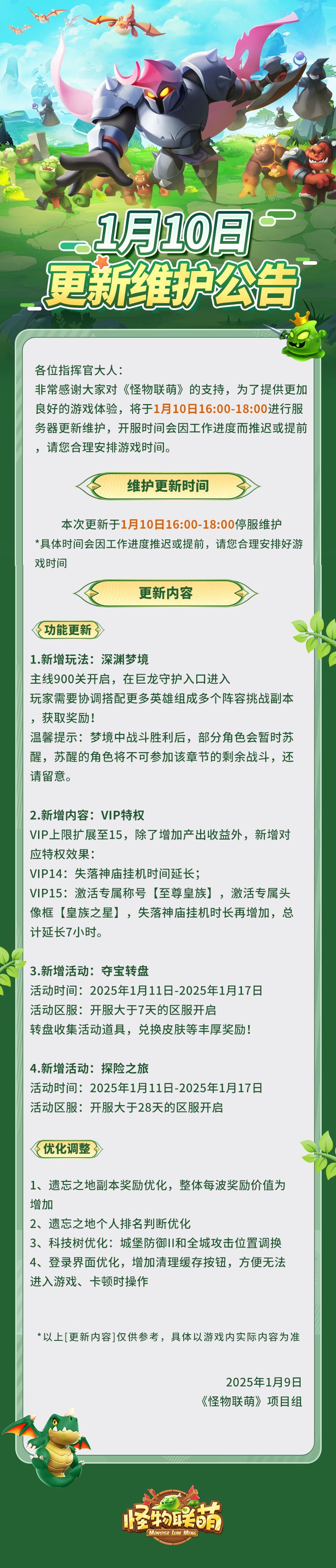 1月10日更新维护公告