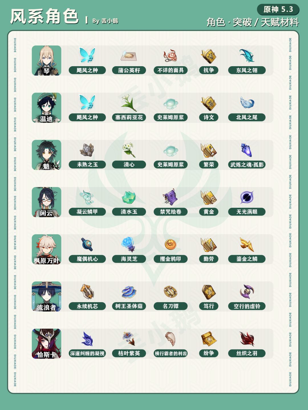 【V5.3】全角色突破/天赋材料