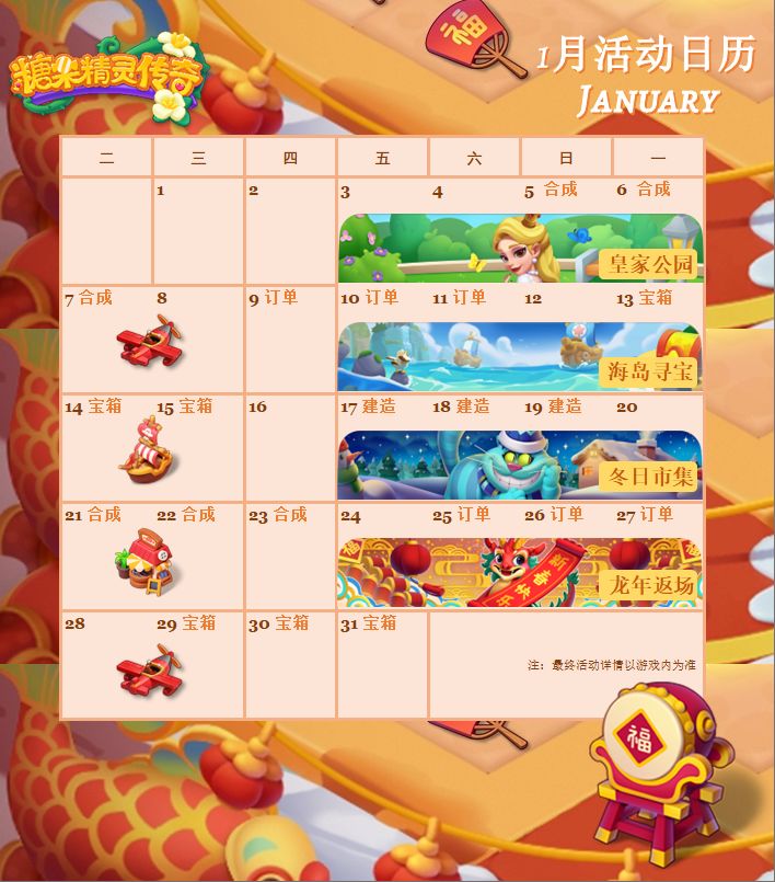 1月份活动日历🗓来啦!为了方便各位小精灵安排游玩时间,后续计划按月度向大家同步最新活动消息!!!