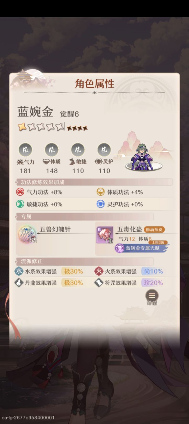蓝婉金法宝是防御(蓝)加成,功法修练加成是气力(红)和体质(黄),加点里又没有体质(黄)。好好一个角色,手脚各玩各的。