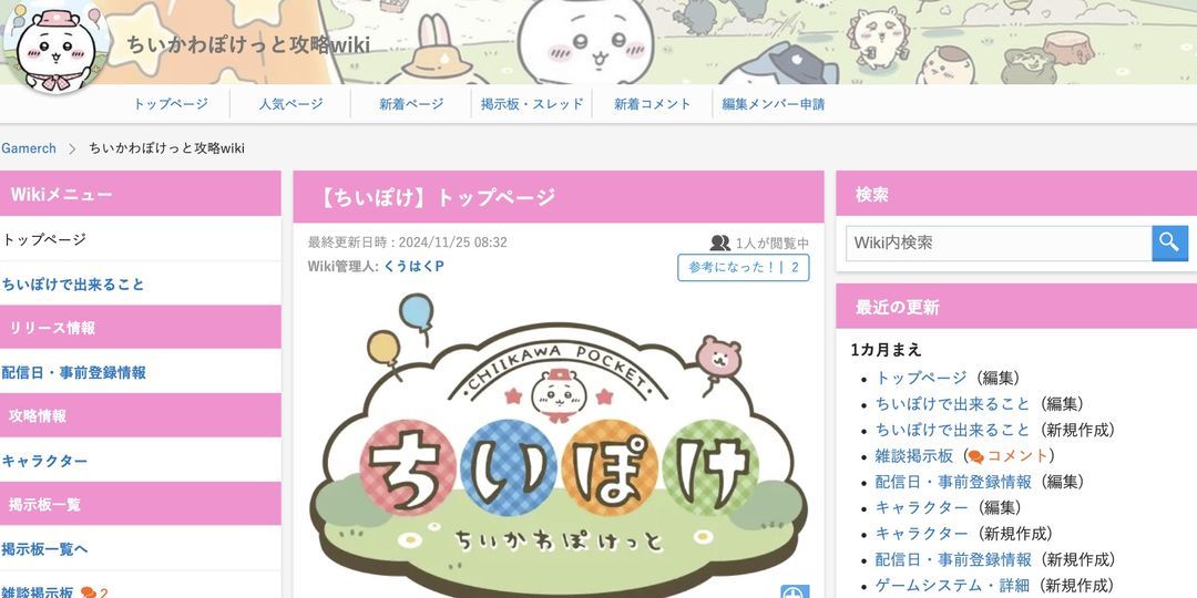 首先因为是外服手游,所以国内消息自然就比较少,如果想了解更多,建议用日文原文名 ちいかわぽけっと 搜索。如果想搜更多内容,可以原文名加英文组合,比如"ちいかわぽけっと wiki",或者取巧用一些中日混用的汉字搜,比如"ちいかわぽけっと 攻略"、"ちいかわぽけっと 预约"。