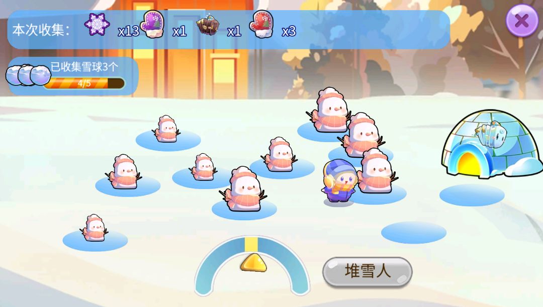 在适当位置点击<堆雪人>,收集雪球,让小雪人前进~