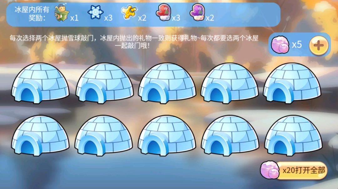 成功到达关底,使用沿途收集到的雪球敲门,获取冰屋中的奖励就可以完成堆雪人的游戏啦~