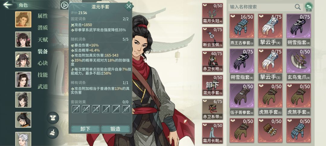 楼主心太急了没练多少,诸位可以后续优化,其中混元手套必备,其为核心。