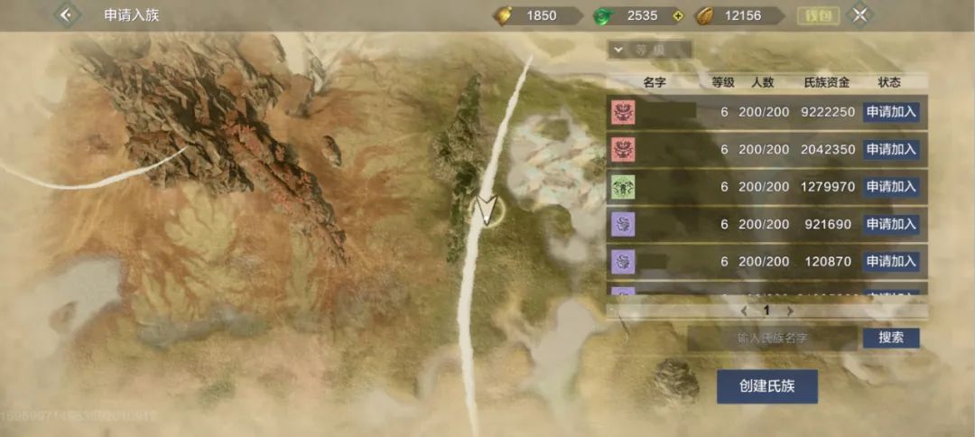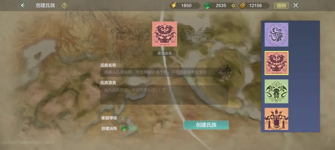 如果旅者在【氏族】页面没找到合适的氏族,也可以点击“创建氏族”,建立一个自己的氏族。(需旅者的家园等级≥2级,消耗500脂玉)
