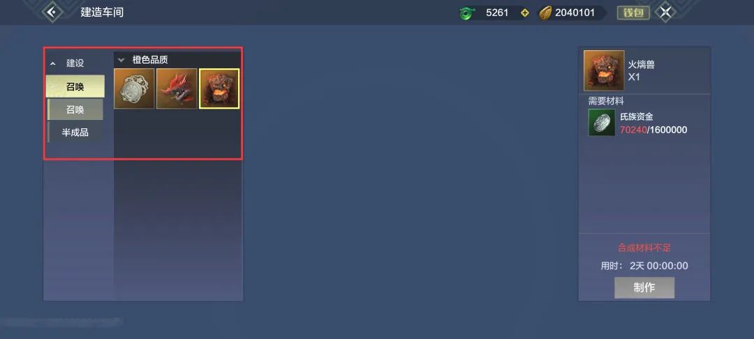 氏族周常为氏族BOSS蜃龙和火㷰兽挑战,需要现在工作台制作对应BOSS再召唤挑战。(需消耗大量氏族资金,制作周期较长)当氏族通知本周打氏族BOSS后,氏族成员可消耗氏族贡献接取这两个周常。