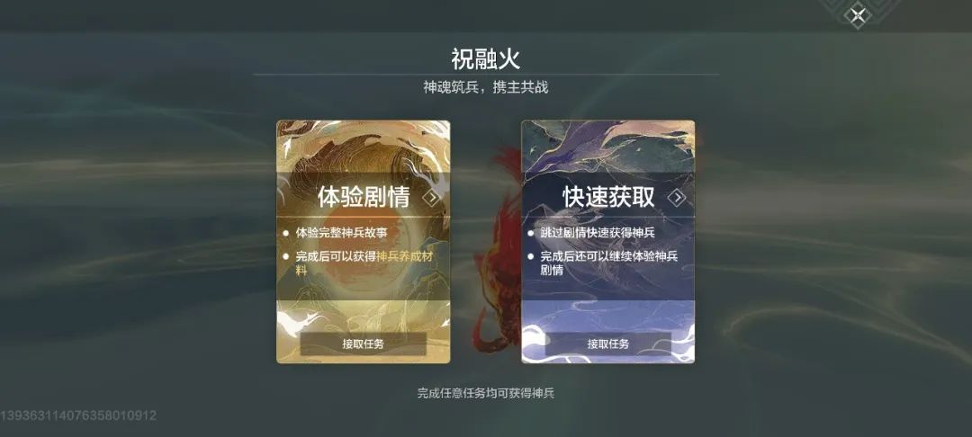 ● 快速获取:选择该模式会跳过剧情快速获得神兵,完成后还可体验剧情拿养成奖励。
