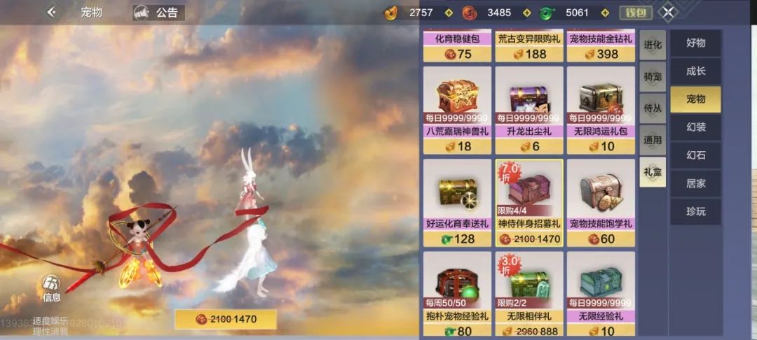 当然,不喜欢麻烦的旅者也可以在【商城-宠物-礼盒】直接购买侍从礼盒,神侍伴身招募礼可直接获得观山者灵珠子/菟爰爰/小阿鼓·招募令~