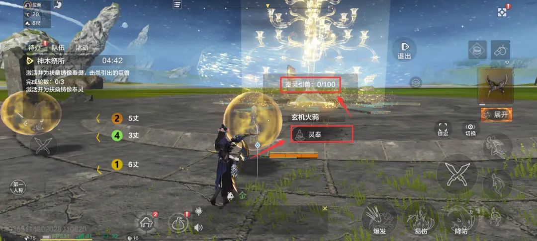 进入地图后,找到玄机火鸦点击【灵奉】,灵奉进度达到100时,会有巨兽降临,击杀后再次出现玄机火鸦,总共三轮。全部完成或挑战时间结束后,根据完成轮数发放奖励。