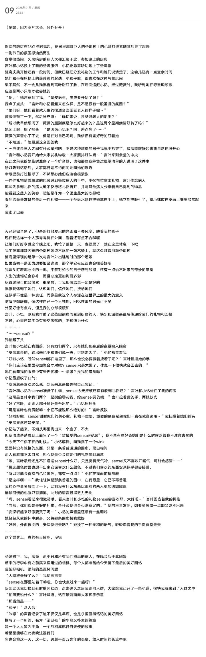 声明:如果一切顺心的话,本人将会在最后一篇新年特别篇完稿后,退出冬日树二作长篇续作的行列
