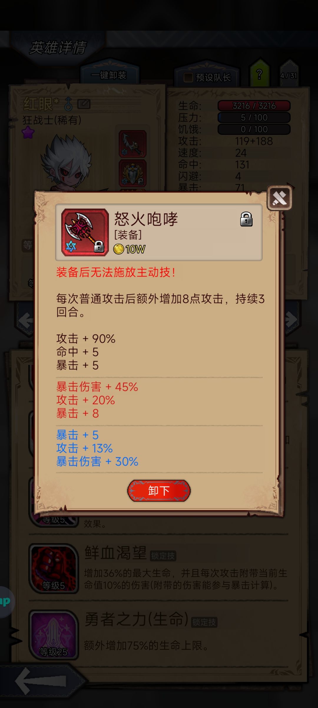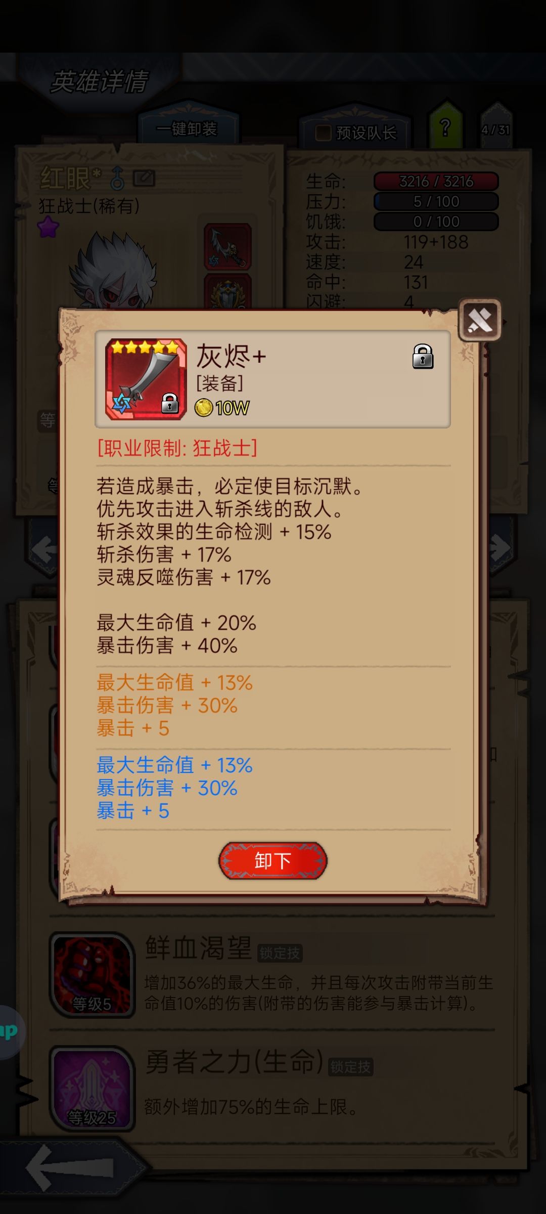狂战哥靠吸血续航所以命中不可低于131