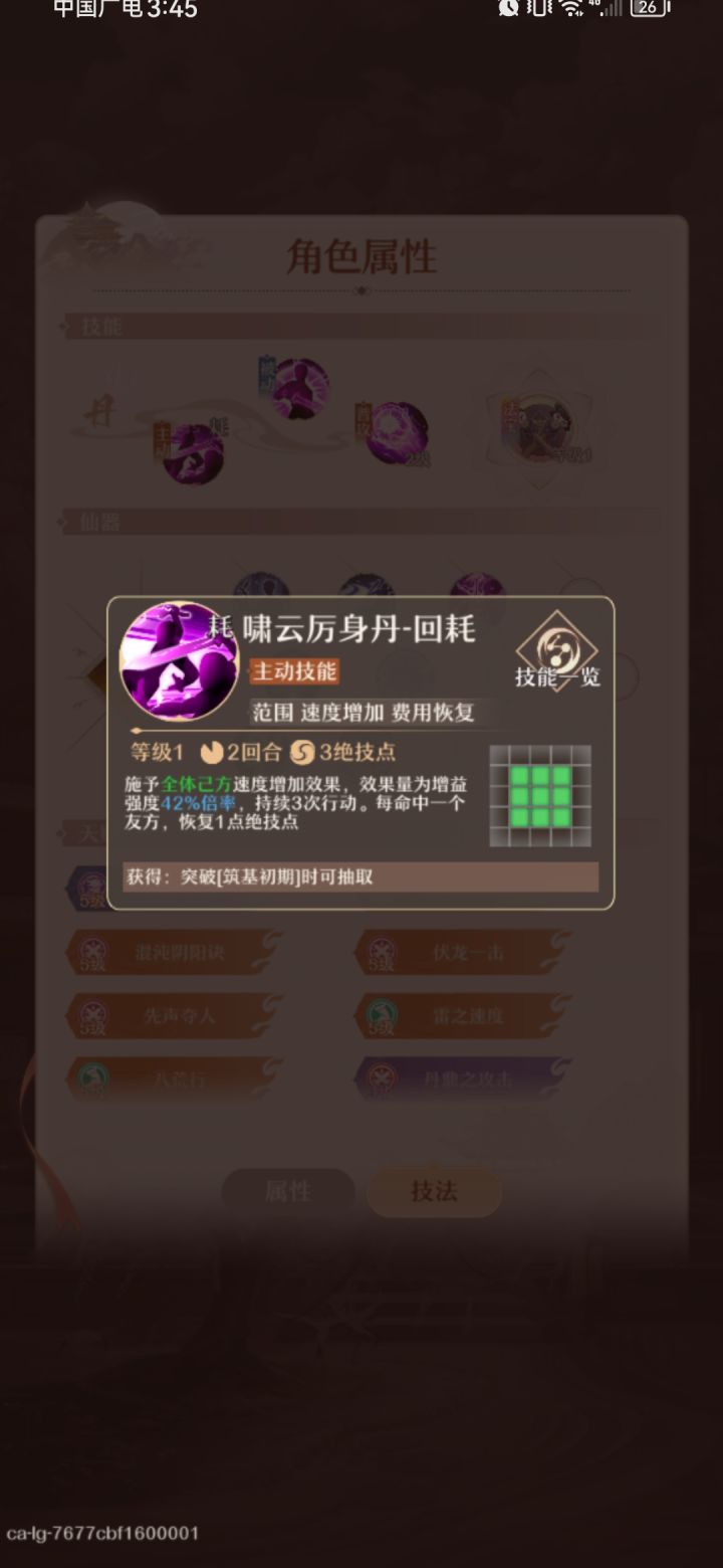 类似于崩铁的战技点,但是这里绝技点是用来放大招而且全队共享。对于大部分角色来说都是净耗点,大部分产点等于甚至小于耗点。经典如耗四点的水咒大群攻,耗三点的雷丹群加速,耗两点但冷却一回合雷单体加速。