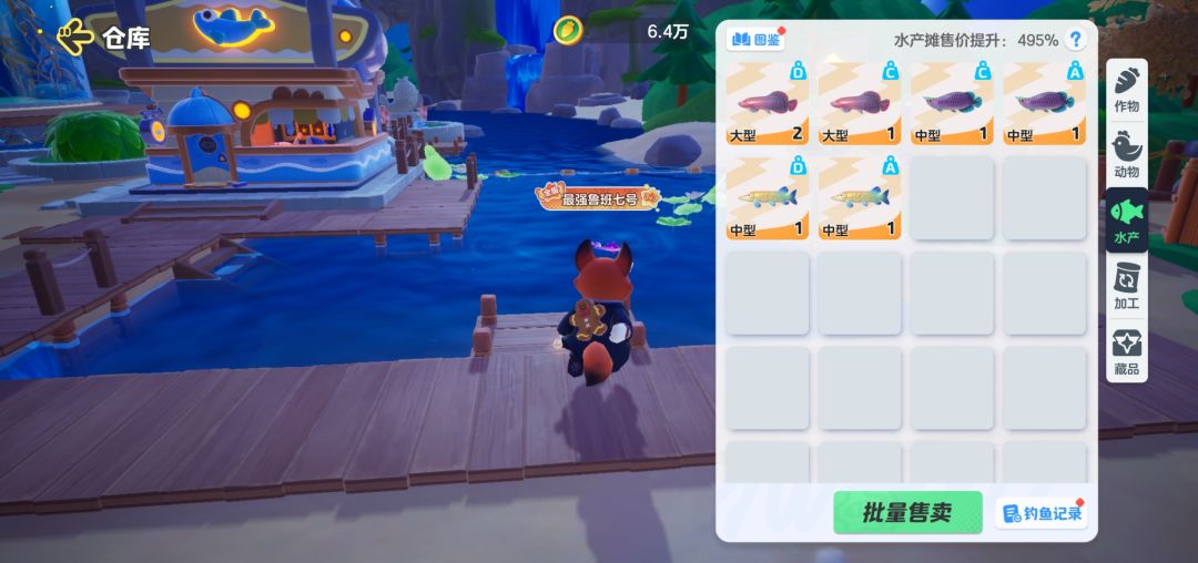撒完“初级鱼饵”后,还剩6.4万,背包空空。