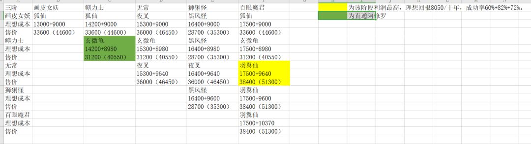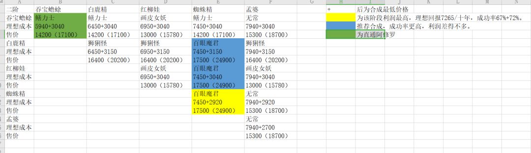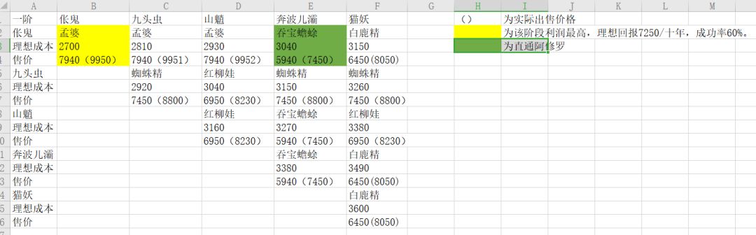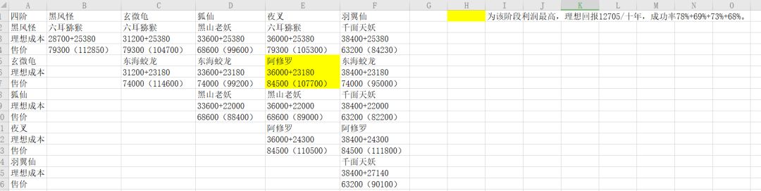 3、实际炼妖出售价格高于面板价格,具体浮动规律还没发现,不过都是在平均值上下10%左右浮动;