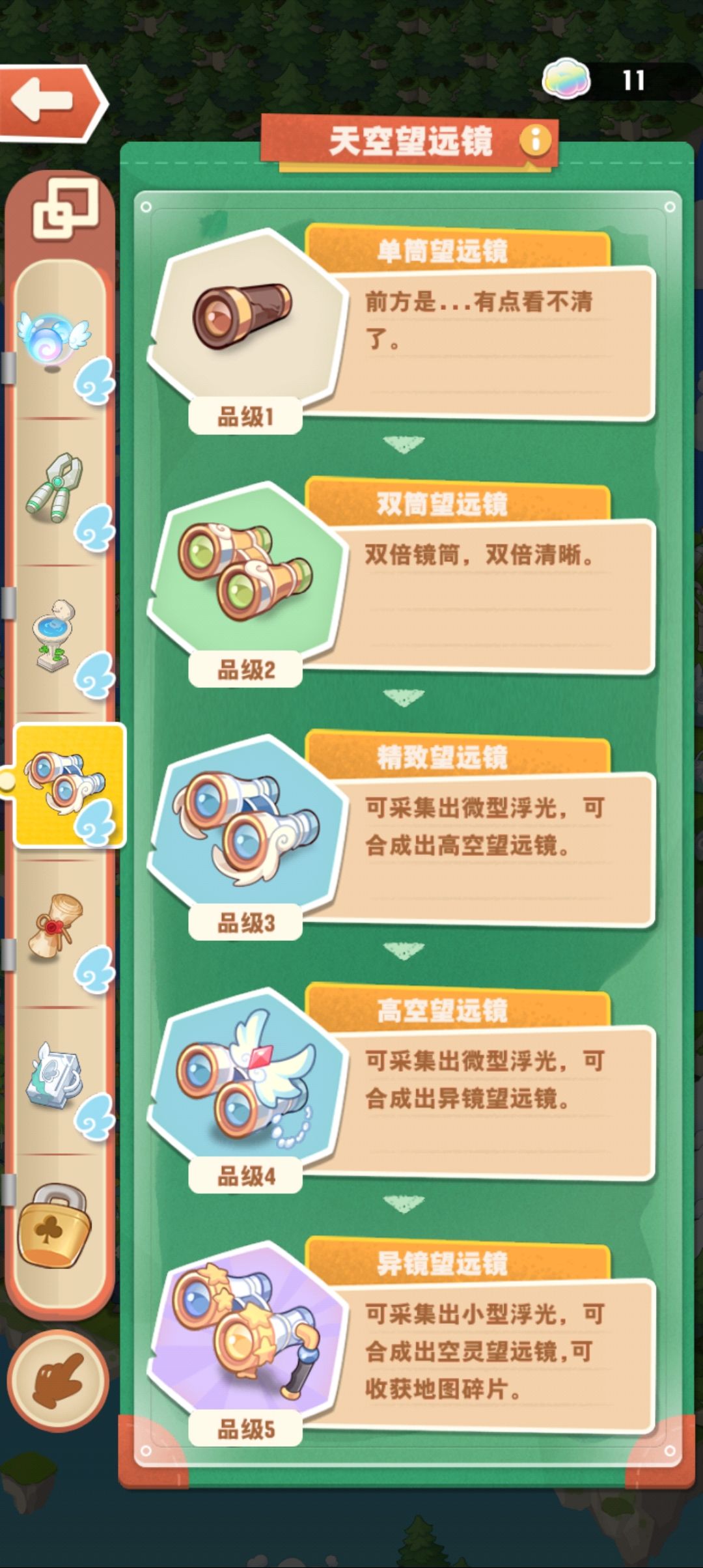 资源袋,能开出扳手、望远镜、浮光(能量)