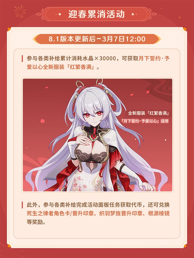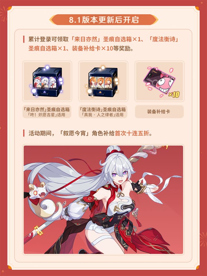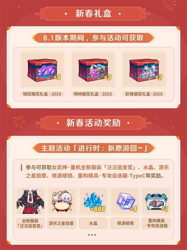 舰长好!《崩坏3》8.1版本「喧鼓祈新」即将开启,今天爱酱为舰长带来8.1版本新春福利情报,快来一起看看吧~
