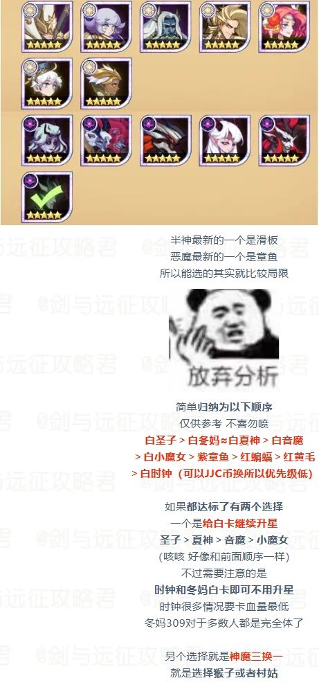 期愿邀约已经算是老活动了,在这里就简单聊一下吧。首先我们要知道期愿邀约活动并不会给最新的一批英雄,所以直接就排除在这里选四族的情况,那么其实就是在半神与恶魔中选择。