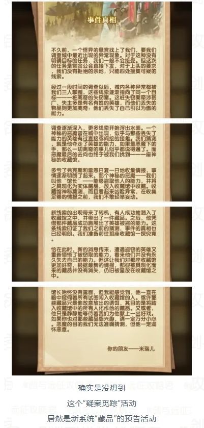 在昨日的版更邮件里提到了疑案觅踪这个活动,其实并不陌生。