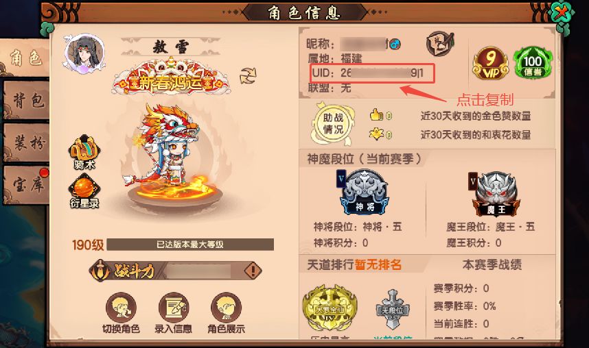 游戏主界面左上角头像-点击头像-点击复制右上角UID