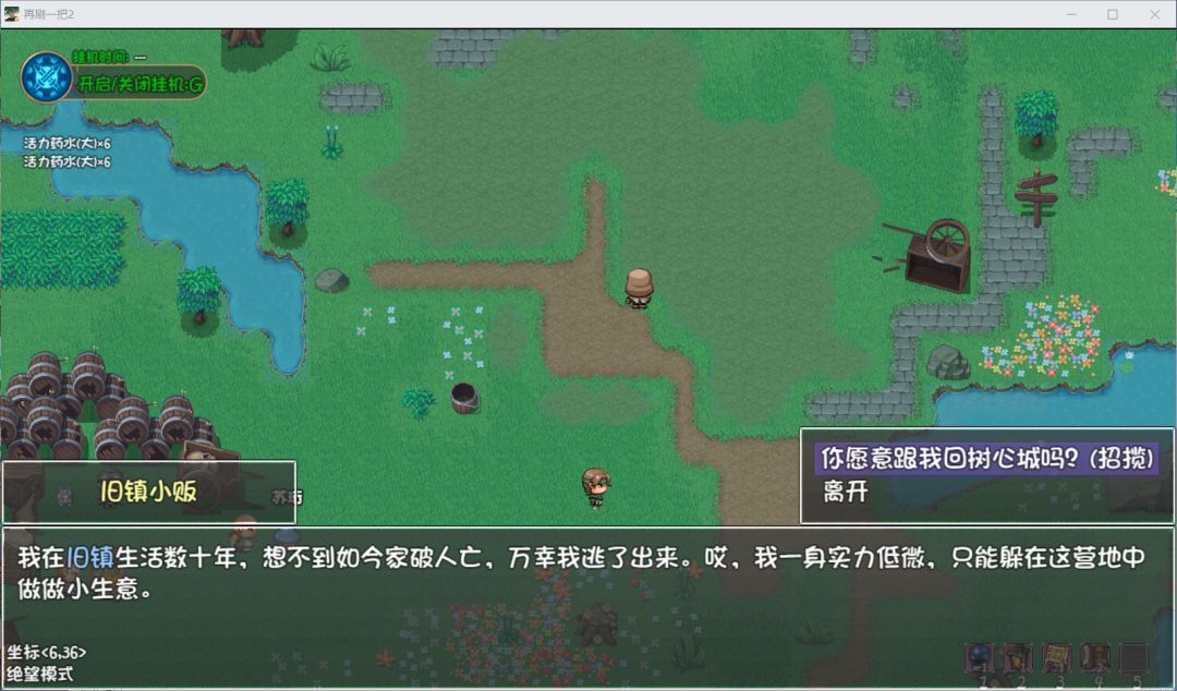 - 我们往下走,来到地图左下角,与光头NPC旧镇小贩闲聊给,他10w玛内后,他就会前往树心城,且商店会打折。该商人会售卖一些食物制作材料。
