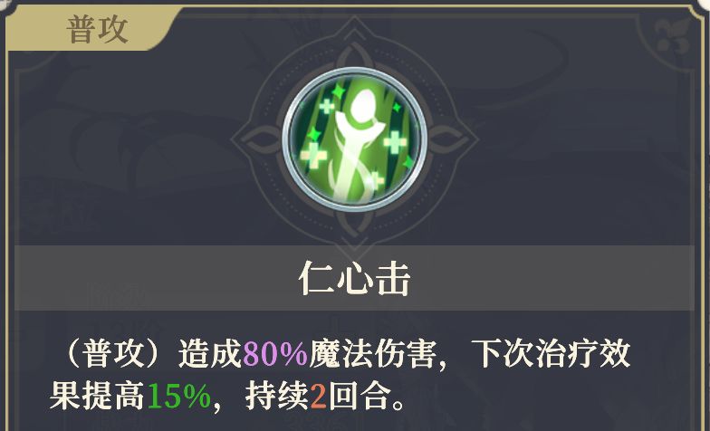 - 提升魔攻,所提供的buff也能提高魔攻和治疗效果,并提供一定的驱散能力和上减益能力,与个性和角色定位契合。