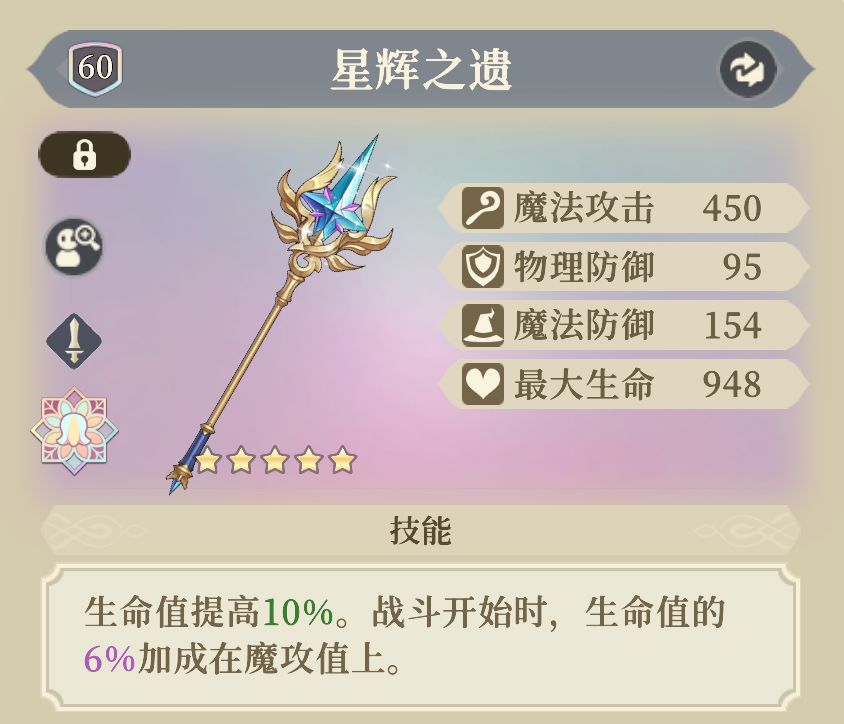 - 3→4星的提升:魔攻、治疗效果提高10%,移动力增加2格。