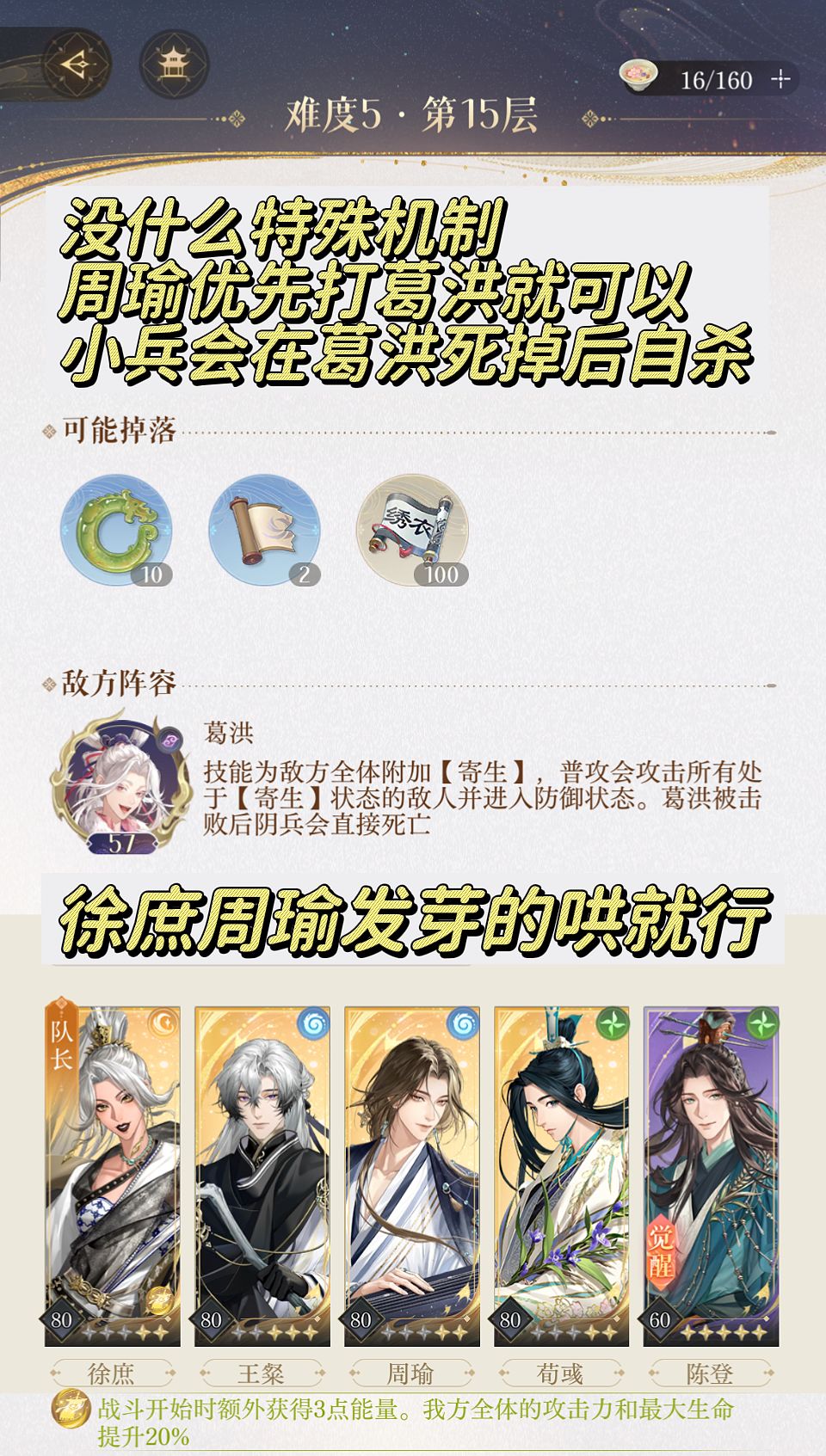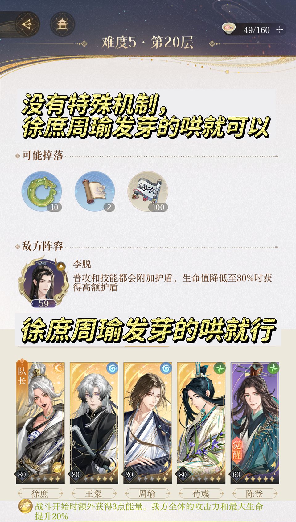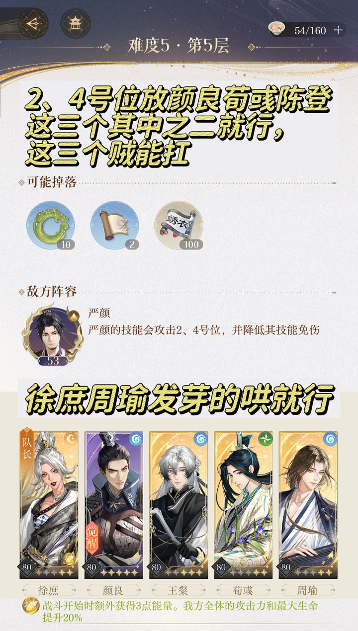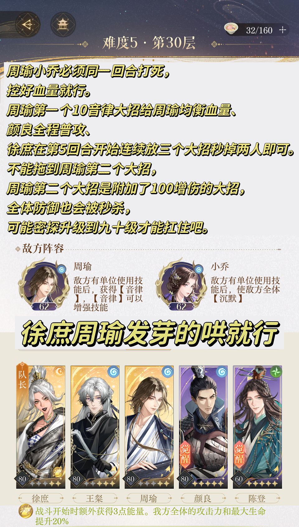 【30层周瑜小乔】颜良就比荀彧要好用,因为一回合只能有一个人放大招,盾位只能普攻的情况下颜良收益更大