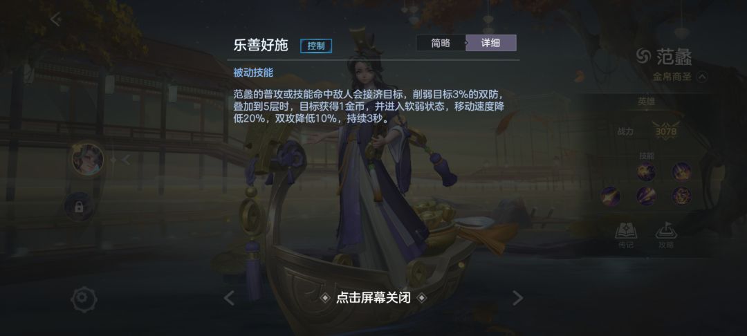 范蠡的每一次技能或者普攻命中敌方英雄时,会削减其双抗,叠加到5层时会降低目标大量双抗和移速,并且降低攻击力,然后给予对面1金币。