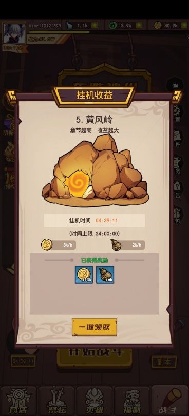 4.挂机奖励 - 一键领取就好