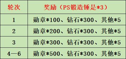 三个挑战的玩法、奖励都差不多就一起讲了,这三个挑战是活动获取勋章的主要途径,完成上面的6个任务即可获得本轮全部奖励并解锁下一轮任务,越靠后的任务可获取的勋章越多,所以大家如果想要在一次活动中获取大量勋章建议先囤积物资(高级卷轴、金钥匙、锻造锤),因为三个挑战是分开的,囤积其中一件即可。如果要囤的话我建议囤金钥匙,每日可用钻石购买大量金钥匙,获取途径相对轻松性价比较高。