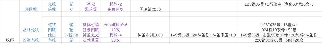 铁打辅助流水C,也许这就是牧师只有3个而弓手5个的原因吧。牧师不推荐4人队,只推荐2+2当纯拐,牧师拐的质量确实高,纯白控的也确实稳。