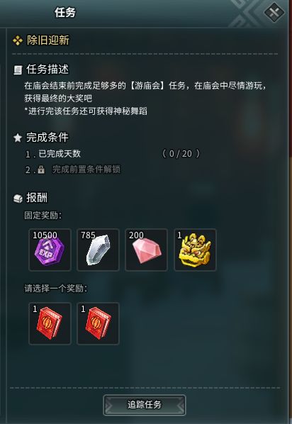 完成【每日任务-游庙会】,完成后即可获得经验和白龙晶奖励哦